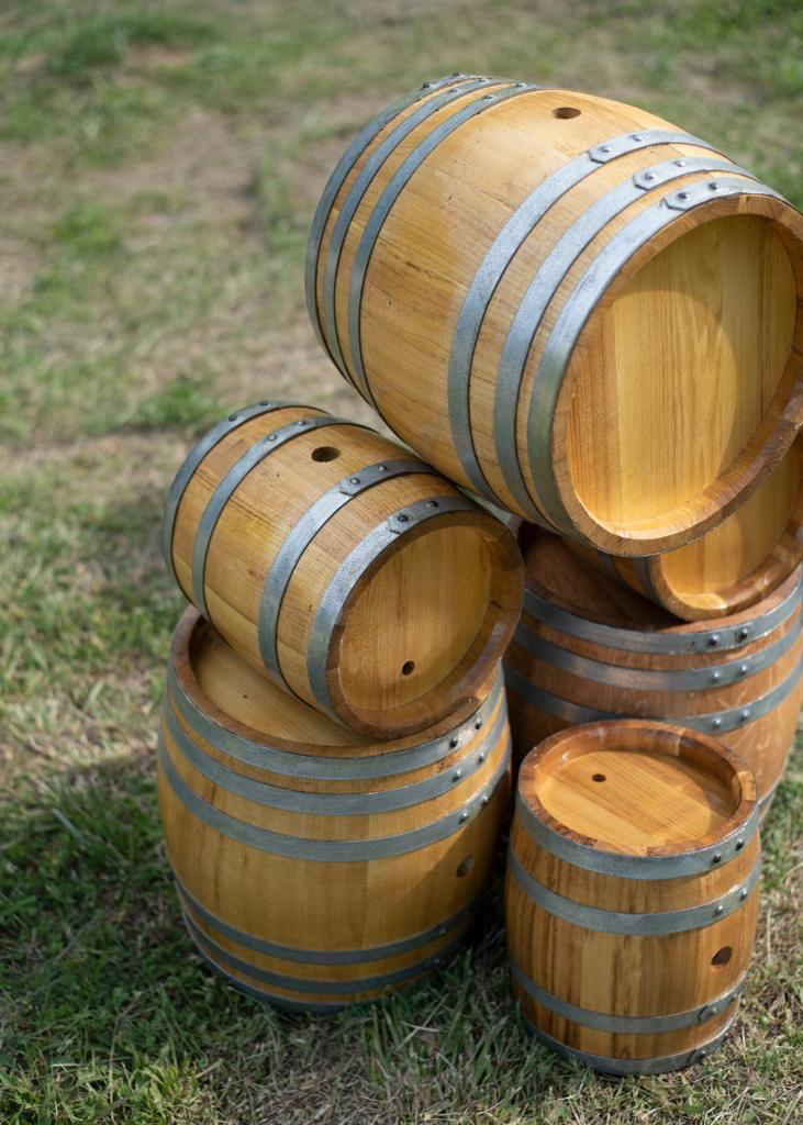 Accesorii Incluse: Fiecare butoi vine echipat cu stativ (suport din lemn) și dop & robinet, gata de utilizare.