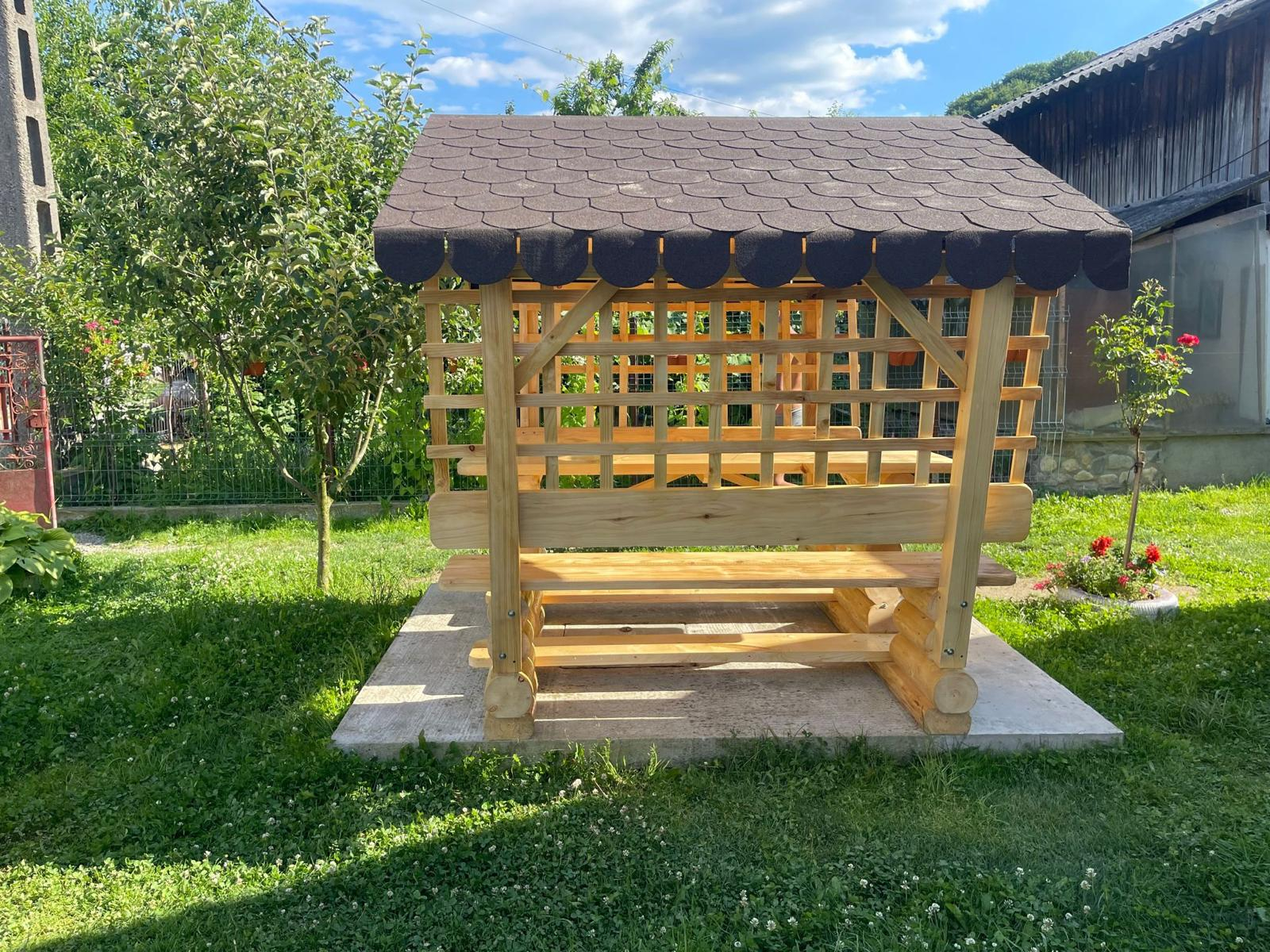 Transformă-ți curtea într-un punct de atracție cu acest foișor rustic, conceput special pentru momentele de relaxare alături de familie și prieteni. Construit integral din lemn masiv și finisat cu lacuri de protecție profesionale, acest foișor îmbină estetica tradițională cu rezistența necesară mediului exterior.