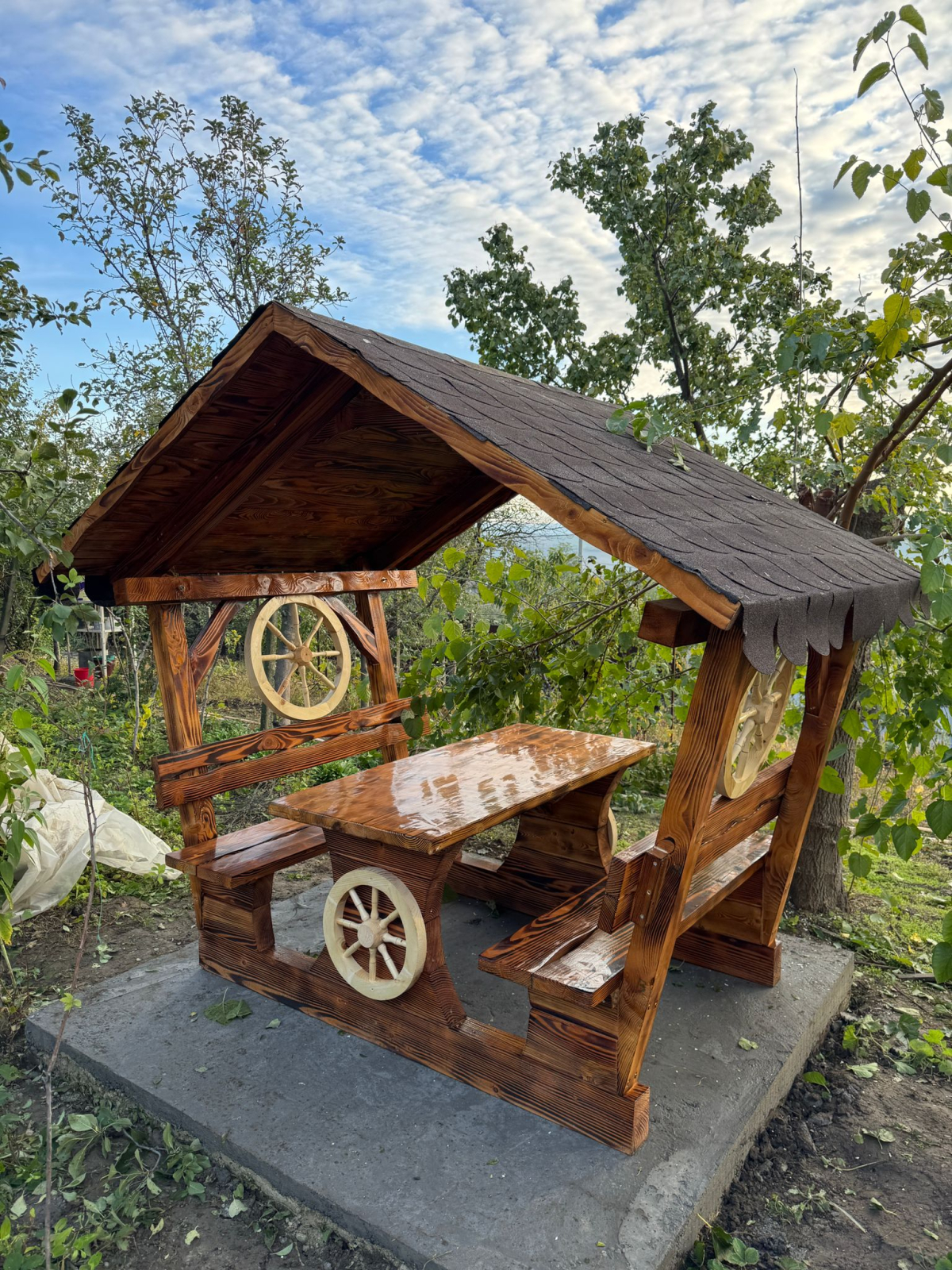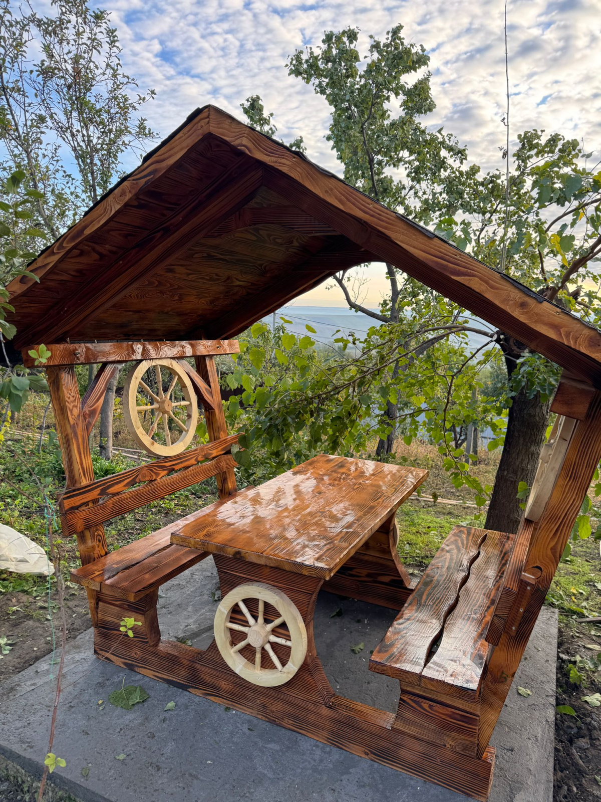 O piesă de mobilier de grădină spectaculoasă, acest foișor îmbină măiestria tâmplăriei tradiționale cu elemente decorative unice. Finisajul prin lăcuire pune în evidență textura naturală a lemnului, oferind în același timp o barieră protectoare de lungă durată.