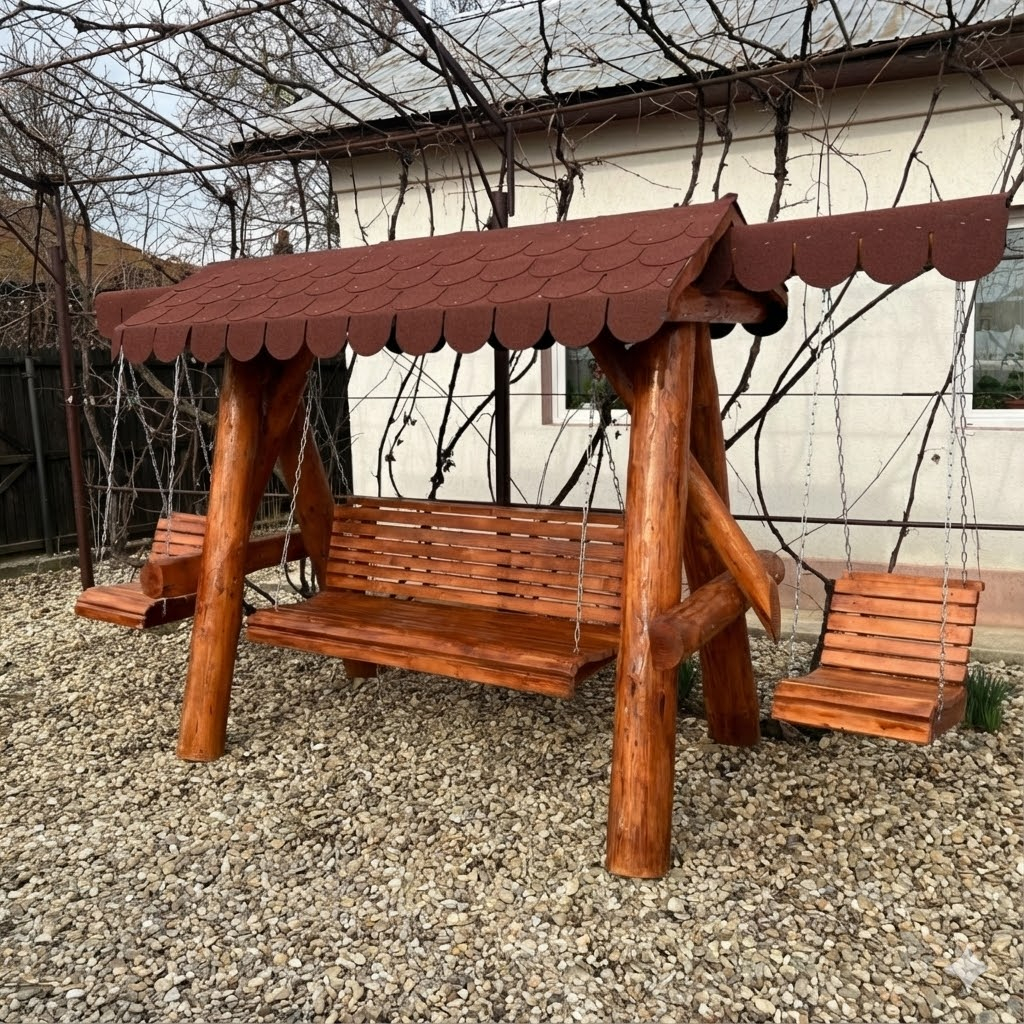 Leagan din Lemn Masiv 2 Extensii Acoperis Sindrila Bituminoasa