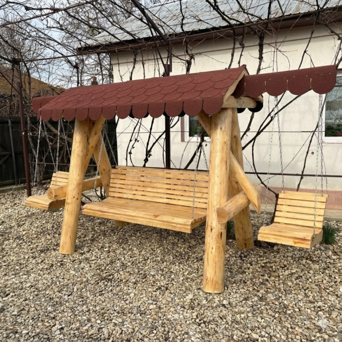 Leagan din Lemn Masiv 2 Extensii Acoperis Sindrila Bituminoasa