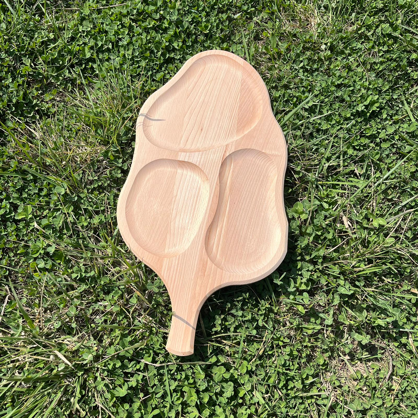 Adaugă o notă de creativitate și naturalețe mesei tale cu acest platou de servire sculptat în formă de frunză. Realizat din lemn masiv selecționat, acest accesoriu nu este doar un simplu obiect utilitar, ci o adevărată piesă de decor care atrage privirile, fiind ideal pentru cei care apreciază designul organic și materialele autentice.