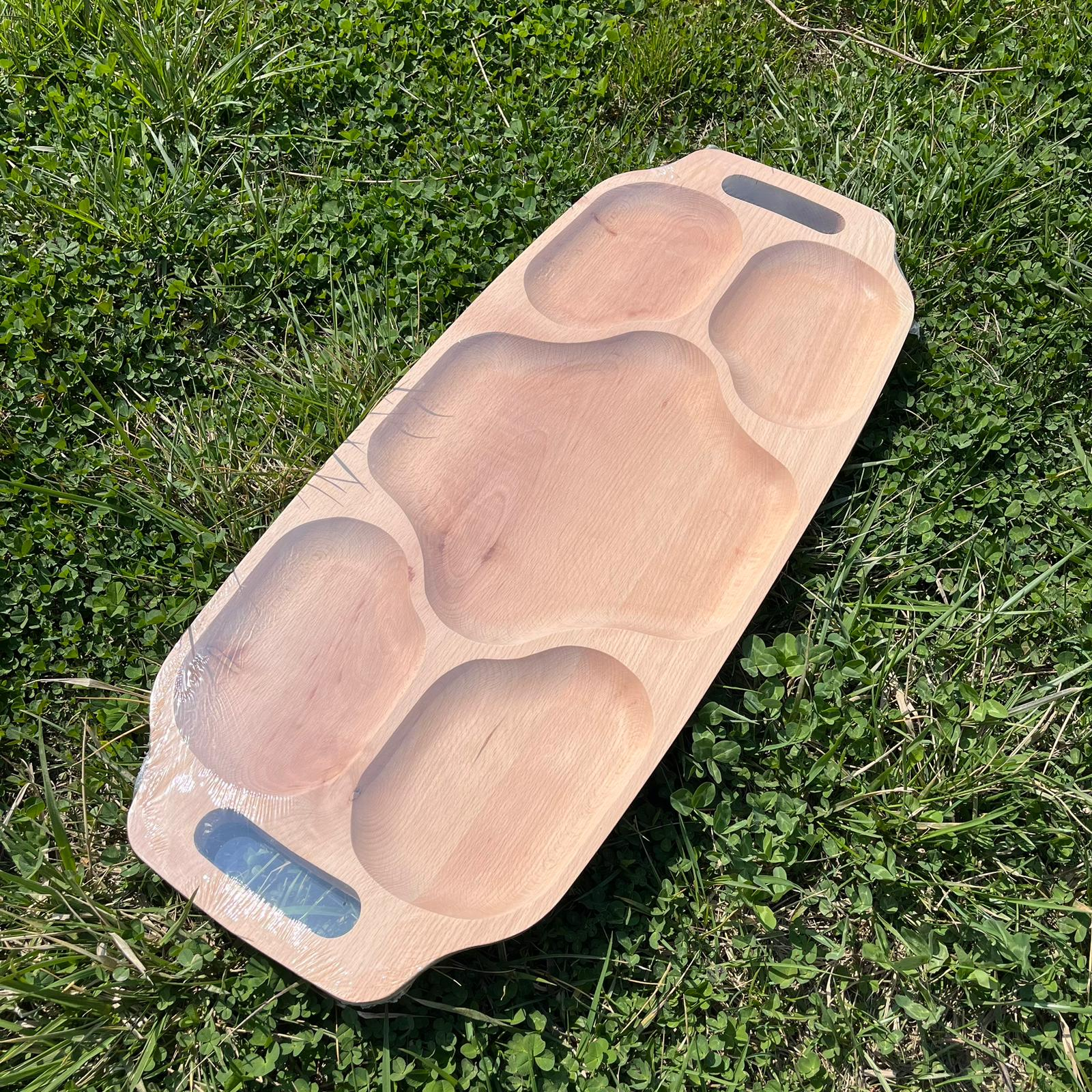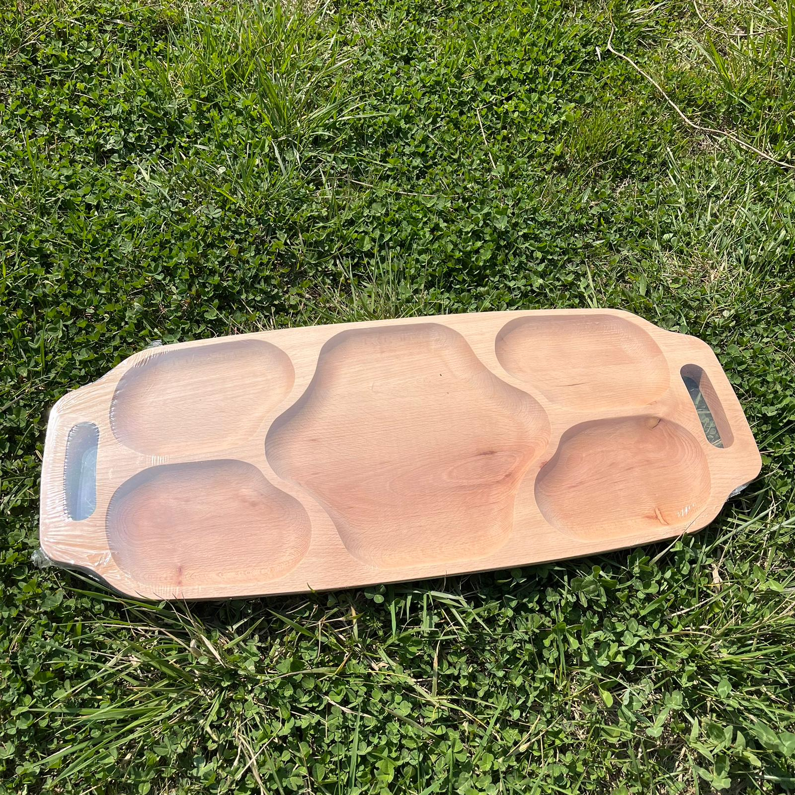 Platou de Servire Tip Tavă cu 5 Compartimente – Lemn Masiv, 65 cm
