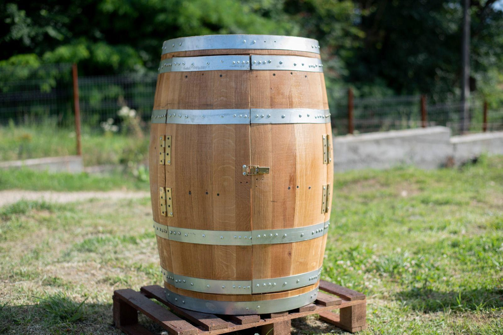 Construcție Autentică: Formă clasică de butoi, realizată din lemn masiv selecționat, finisat pentru a scoate în evidență textura nobilă a fibrei.