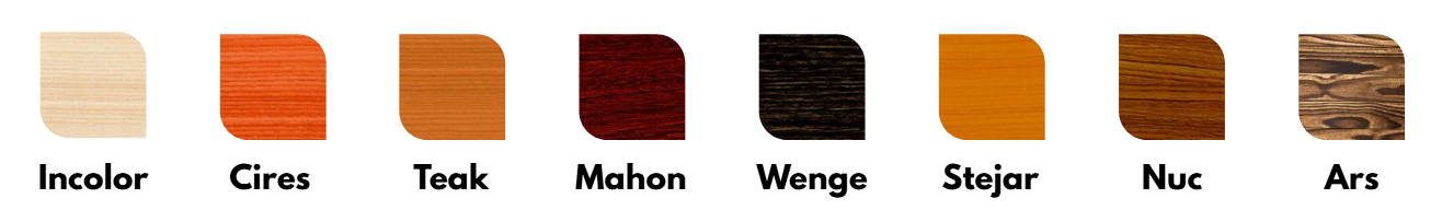 Finisaj: Lăcuit cu produse de înaltă calitate (nuanța se selectează la comandă), protejând suprafața de umiditate și scoțând în evidență fibra naturală a lemnului.