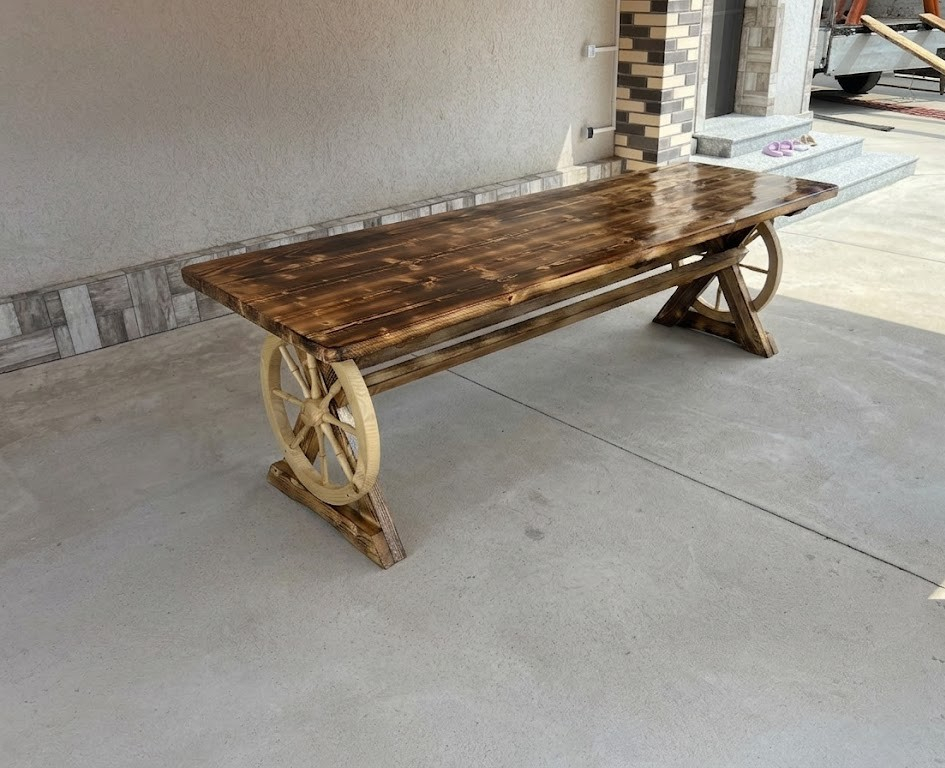 Design: Stil rustic-robust, cu picioare masive care garantează că masa nu se va clătina, indiferent de utilizare.